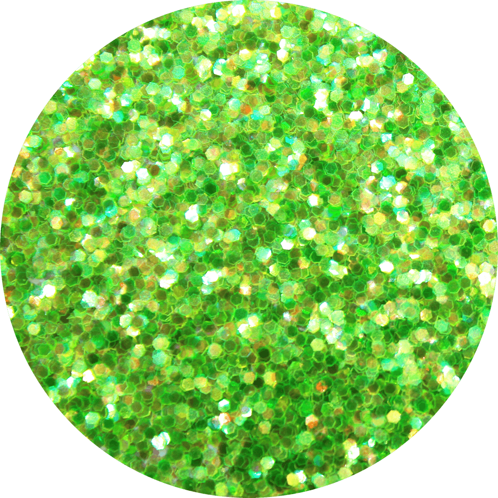 Meridian is a lively lime green neon glitter with warm golden hues.
