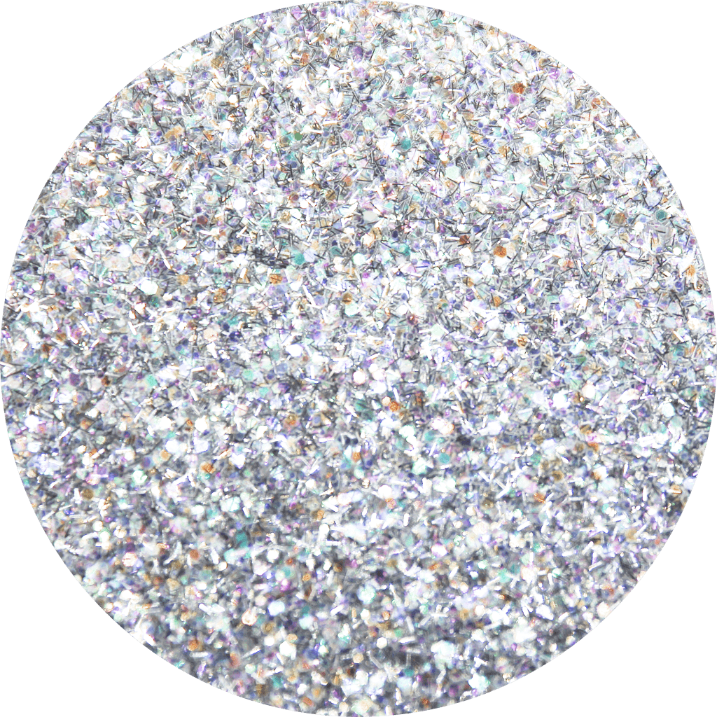 This captivating glitter will put you under its spell with its bright mix of silvery slices and transparent whites with radiant iridescence.