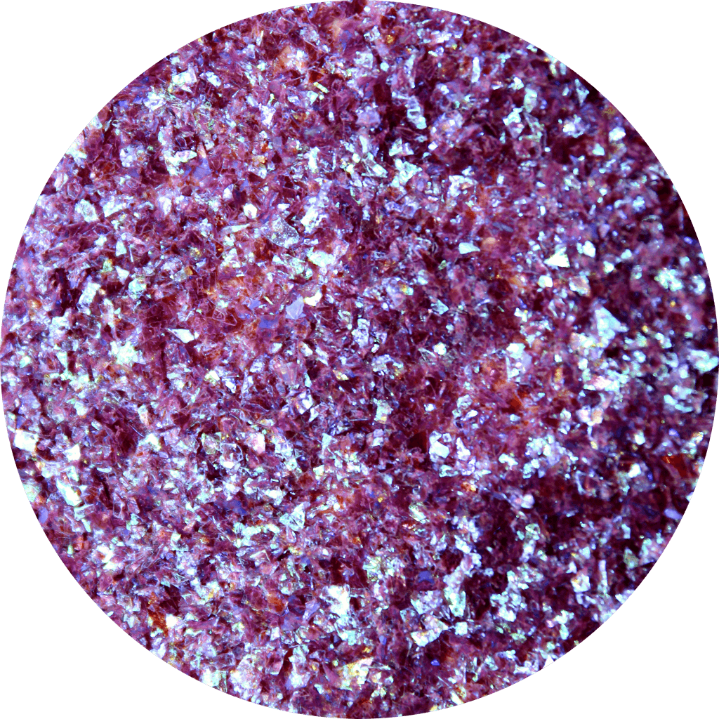 Like the sheer fabric, Gossamer is a feather-light transparent flake with pale violet hues and cool turquoise blue iridescence.
