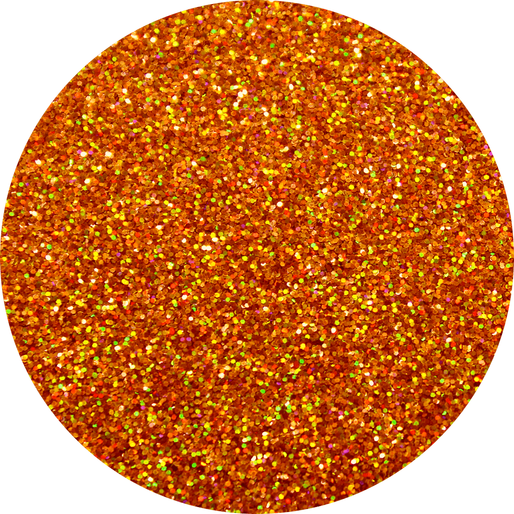 Like a fiery flash of light from the sun, Solar Flare is a bold glowing orange color in our chunky size with an intense holographic iridescence.