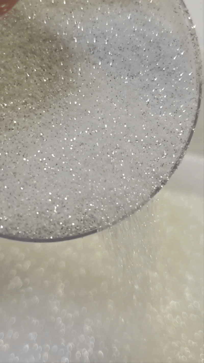 Our 407 Diamonte is a shiny white, ultrafine glitter.