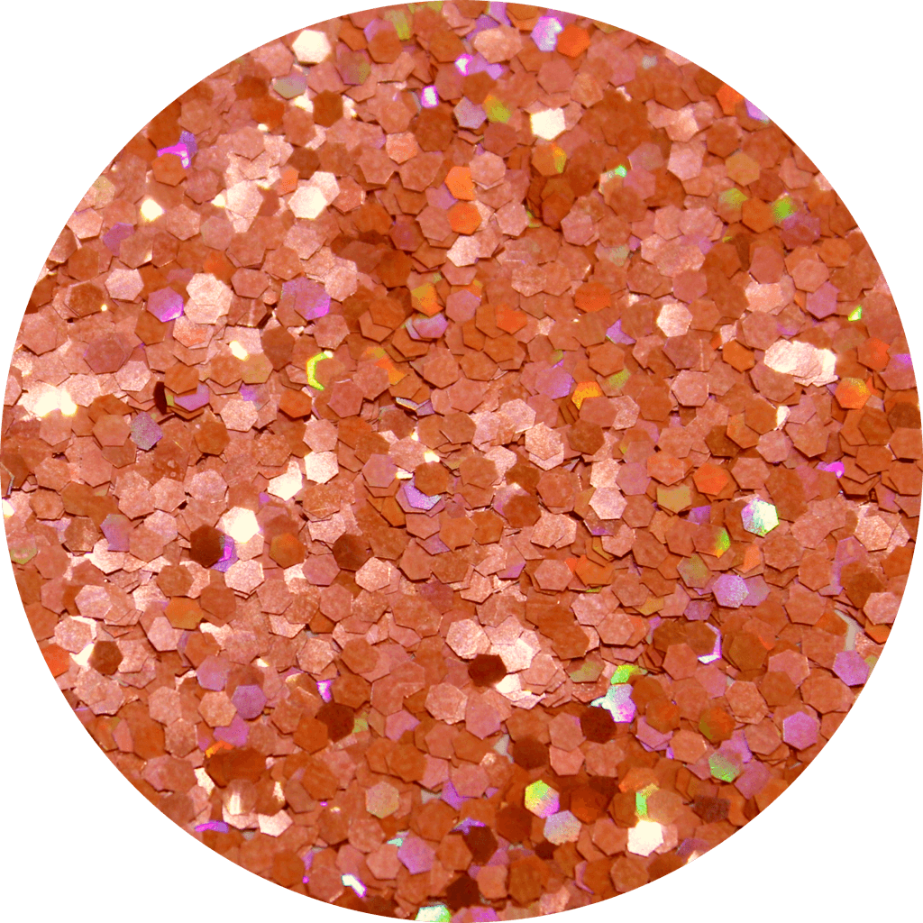 This warm coppery glitter is holding nothing back its fierce holographic hues and dramatic .062 size.