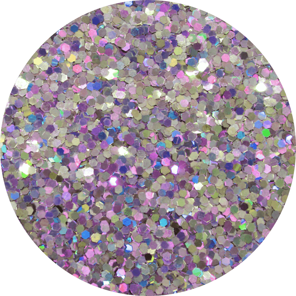 Like the rare gemstone, Ametrine is a light lavender glitter with stunning holographic hues emanating from its larger 0.40 sized surface.