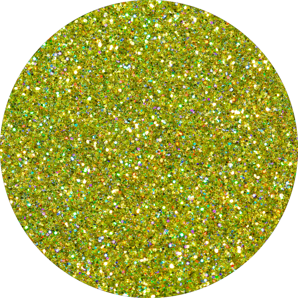 You'll want to explore the intense holographic sparkle of this lush lime green glitter with a dynamic golden undertone.