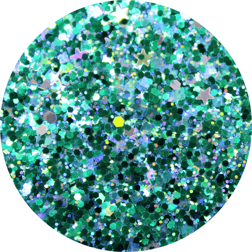 Come fly away with this adventurous glitter! Magic Carpet blends vibrant emerald greens, shimmering sea blues, and luminous silvers while weaving in layers of holographic hues.