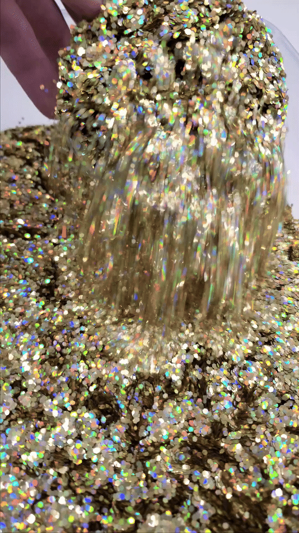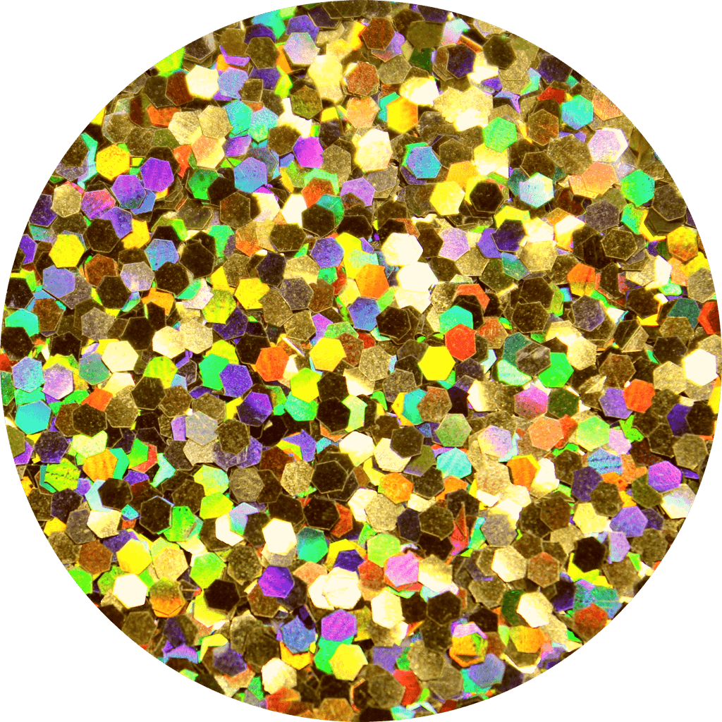 This holographic gold glitter is the symbol of glamour in its larger than life .062 cut size.
