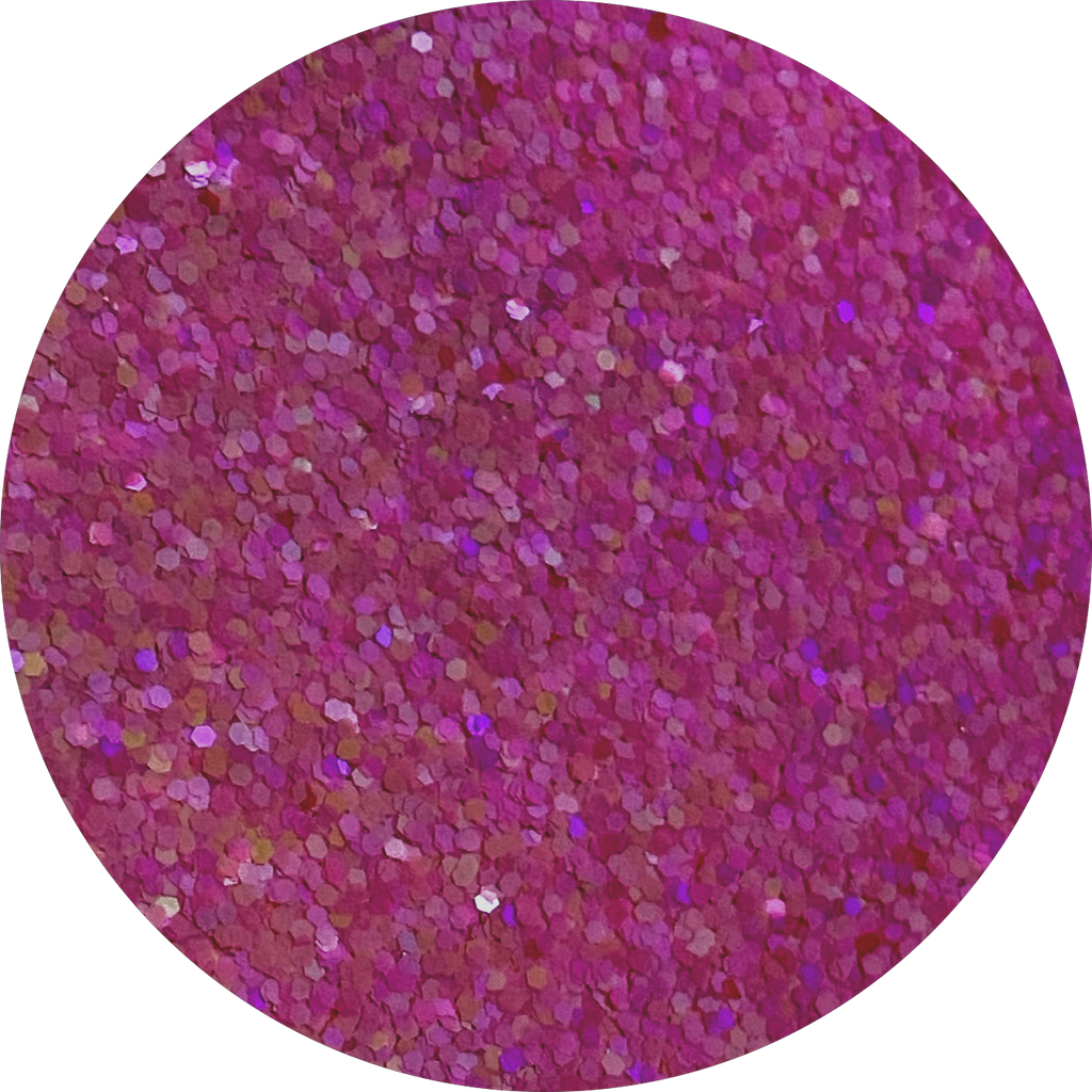 This playful pink glitter has warm berry hues and soft violet iridescence.