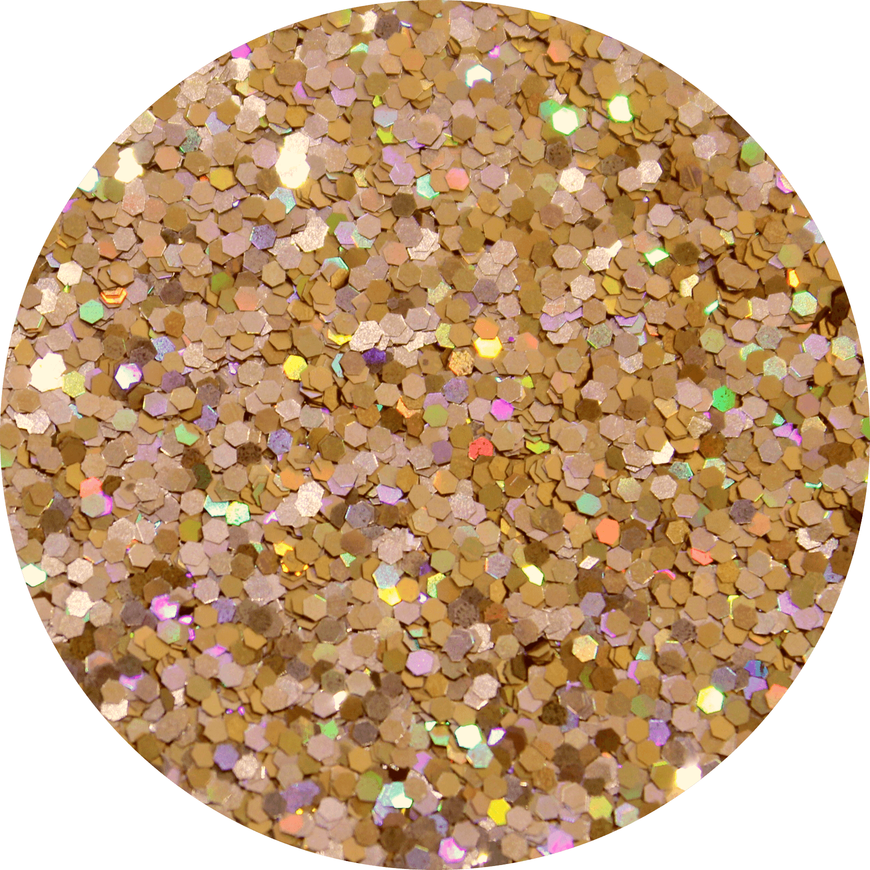 This noble glitter blends radiant light holographic golds with warm honey golds in various sizes...