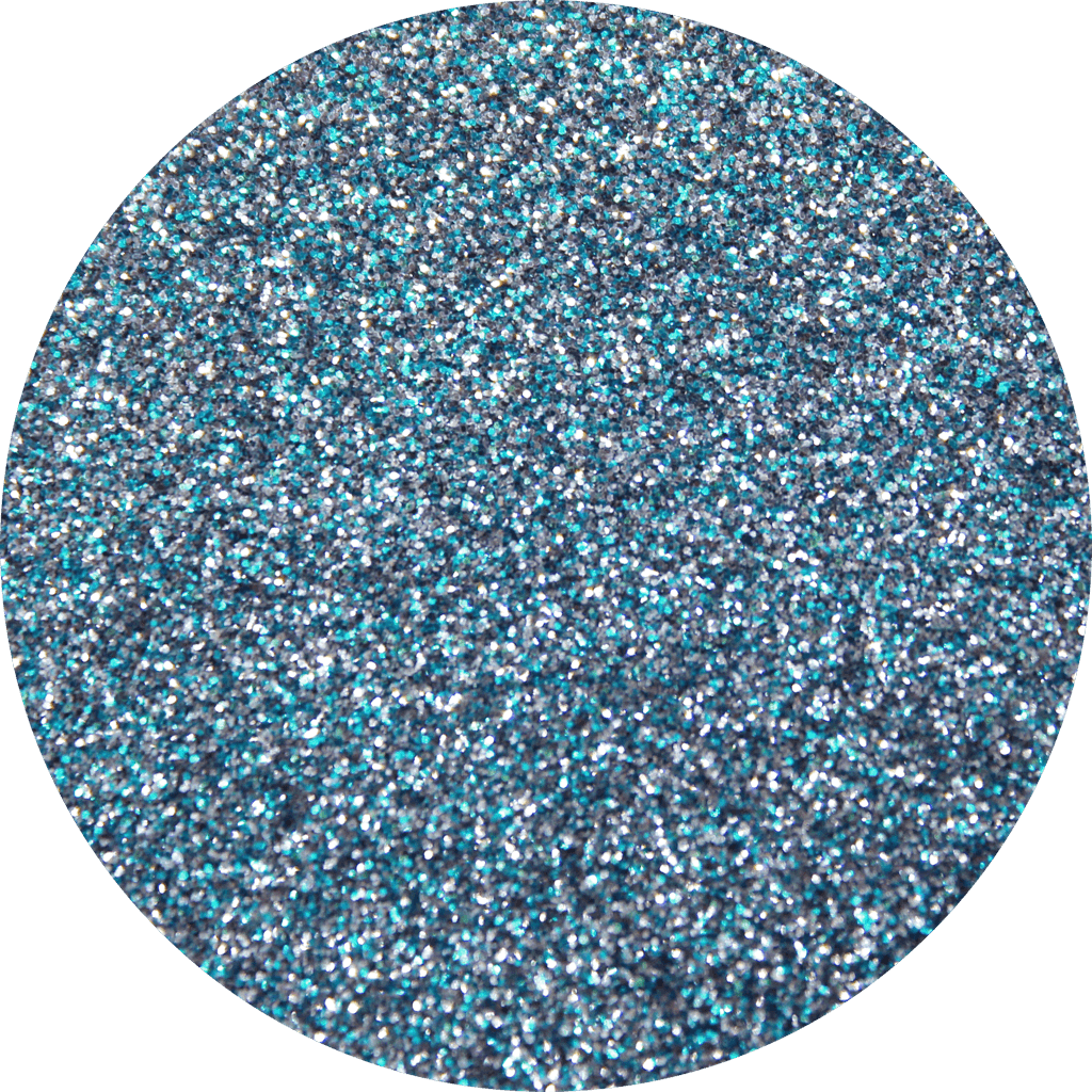This robust opaque ultrafine glitter is a mix of silvery-gray and cool turquoise blue.