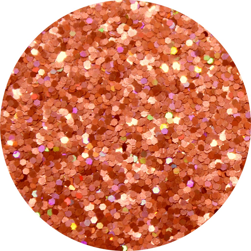 This metallic orange glitter likes to show off its flashy holographic radiance.