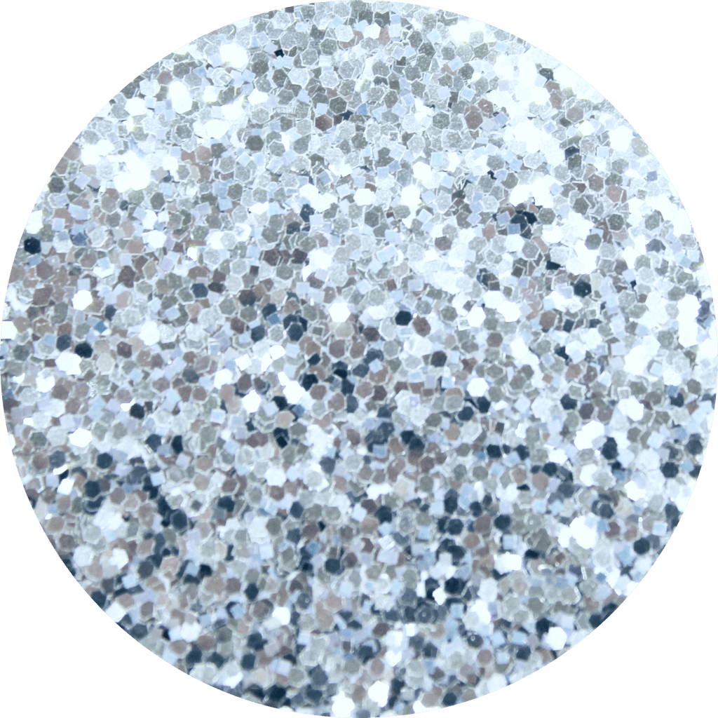 This dazzling opaque glitter in a larger .040 cut looks like hundreds of tiny silver coins polished with a luminous sheen.