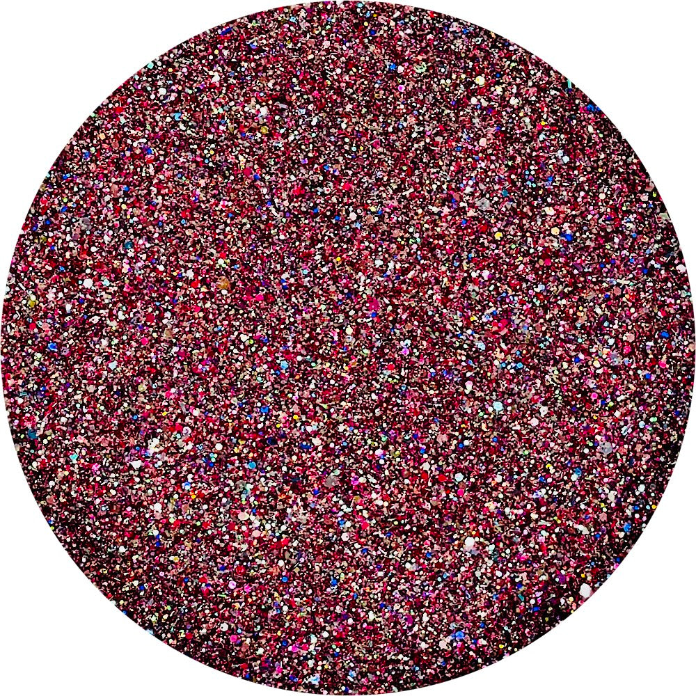 LTD003 is a deep reddish pink opaque ultrafine glitter with a little bit of blue...